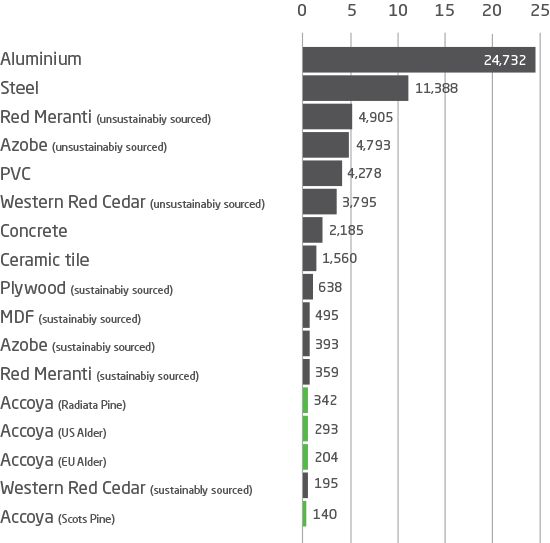 À l’opposé, le bois Accoya est issu de pins radiata à croissance rapide, cultivés dans des forêts gérées durablement (certifiées FSC). Son rendement élevé et sa longévité en font une option efficace pour garder le CO2 stocké sur le long terme.
